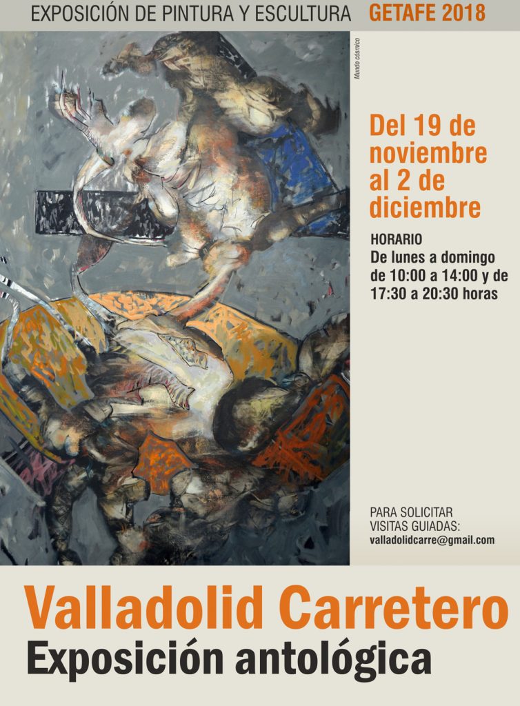 El Espacio Mercado de Getafe acoge hasta el 2 de diciembre, la exposición de pintura y escultura Valladolid Carretero. Exposición Antológica, donde el público podrá hacer un recorrido por la obra de este artista “un pintor de oficio, primero hecho a sí mismo, y completado con formación académica, que le hace poseedor de más de un centenar de premios nacionales e internacionales, representado en museos de toda la geografía española, y en colecciones particulares de todo el mundo”. Así lo explica la autora licenciada en Historia del Arte, Victoria Gasané.