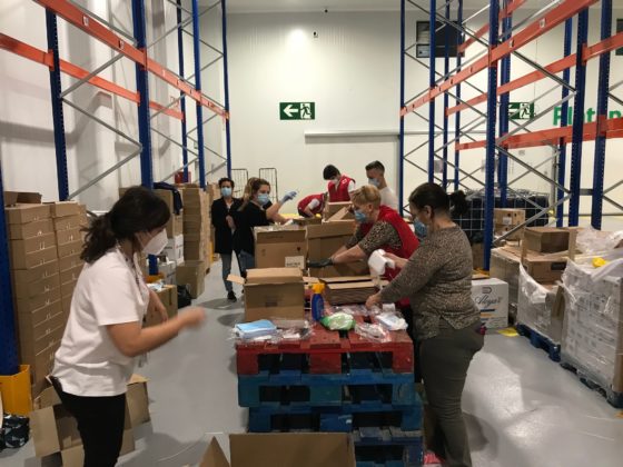 Desde el área de Prevención de Riesgos Laborales de Cruz Roja, en la Comunidad de Madrid, siguen preparando los kits de protección contra el coronavirus, destinados a sus voluntarios que trabajan a pie de calle con los más vulnerables.