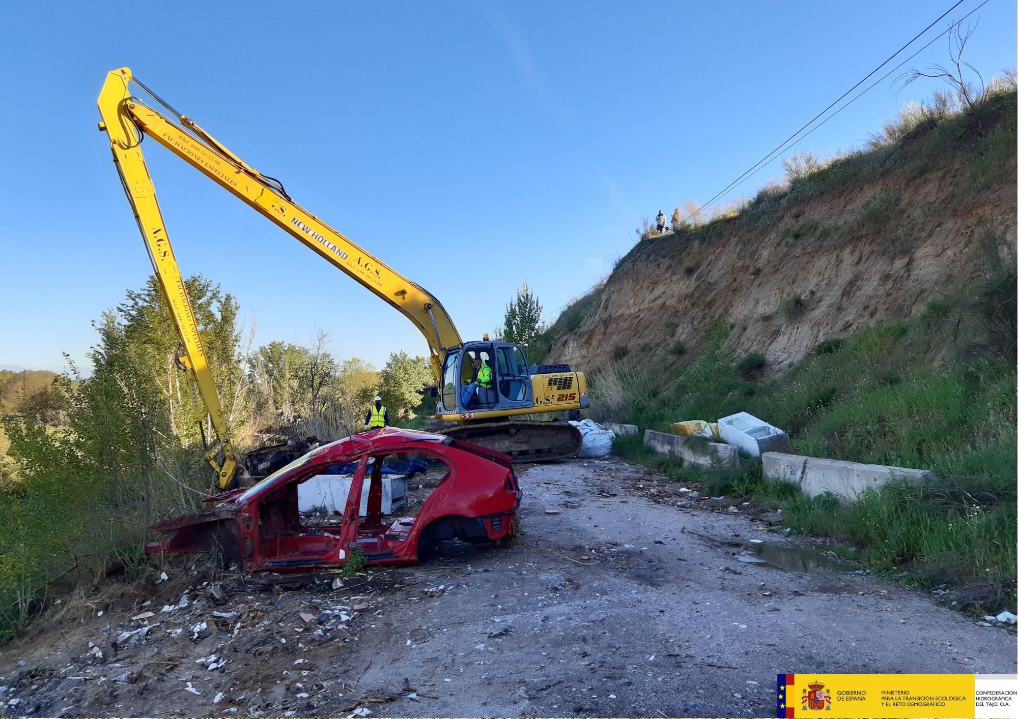 Los trabajos de retirada, con una inversión prevista por parte del organismo de cuenca de 700.000 euros, se iniciaron en diciembre de 2020 y pretenden finalizar en mayo de 2021. Ya en febrero, el organismo público actuó en Arroyomolinos y ahora ha vuelto a retirar hasta cuatro vehículos abandonados y siete en Móstoles, a lo que hay que añadir unos 30 metros cúbicos de restos de vehículos, lo que equivale a unas 50 toneladas de residuos.