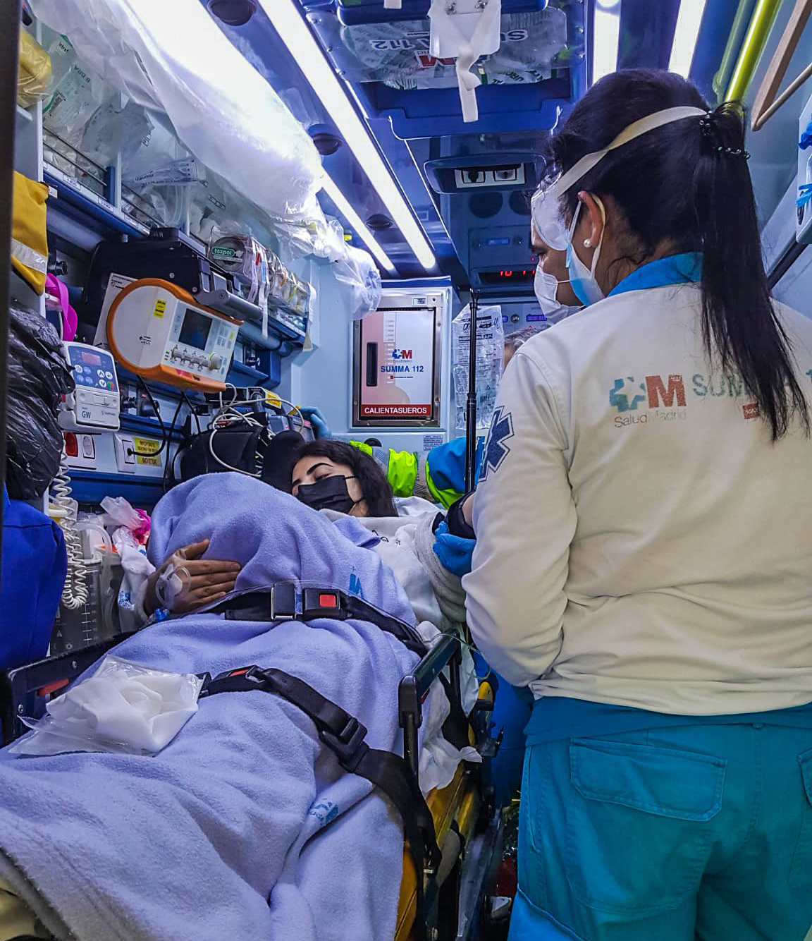 A su llegada, comprobaron que el niño casi estaba naciendo, por lo que le ayudaron a finalizar el alumbramiento y comprobaron que el estado de salud de ambas era bueno. No obstante, fueron trasladadas a la Maternidad del Hospital 12 de Octubre de Madrid para una revisión en profundidad. Se trata del tercer hijo de esta mujer.