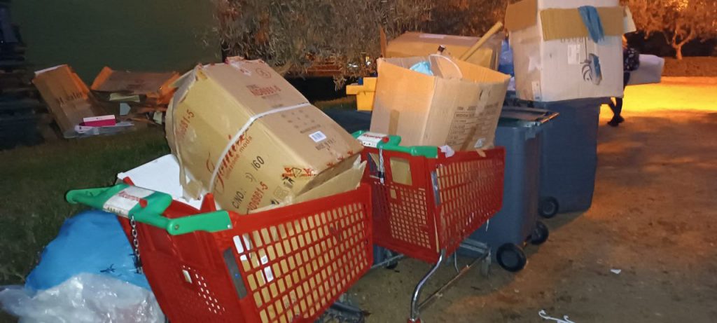 Rotas las negociaciones, pues, llegó la huelga, que cumple una semana y ya se empieza a notar en las calles de Loranca, con contenedores llenos de basura que, para más inri, es recogida con carritos de la compra.