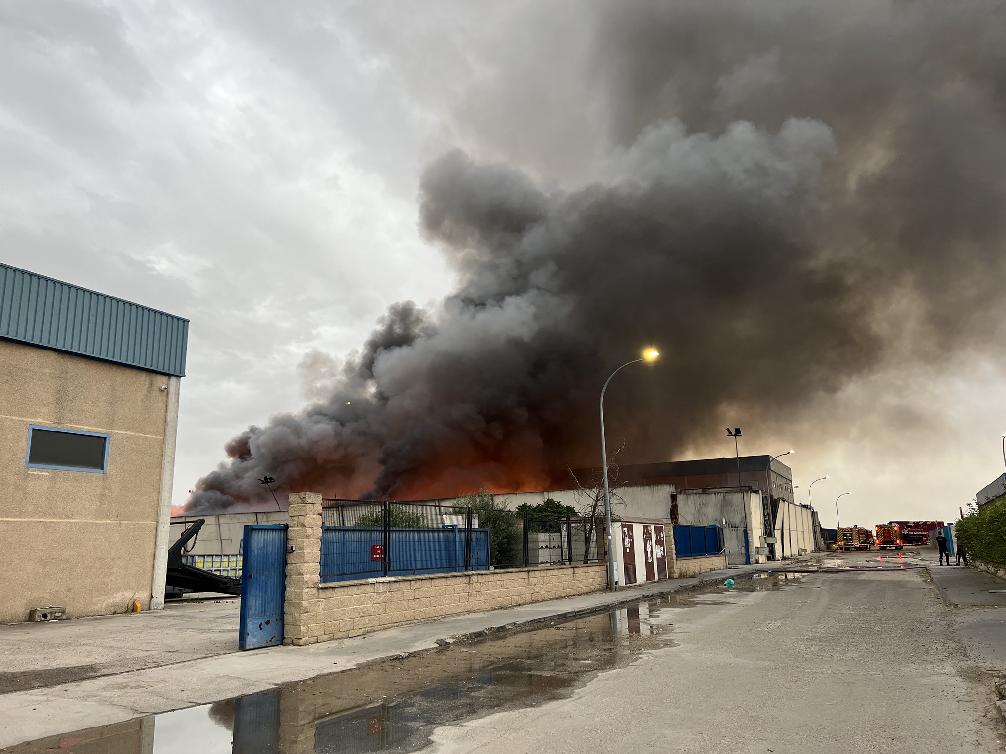 Varias dotaciones de Bomberos de la Comunidad de Madrid tienen «bastante controlado» el incendio declarado este jueves, en una nave de reciclaje situada en el polígono Cañadiego, junto a las M-415, en Serranillos del Valle.