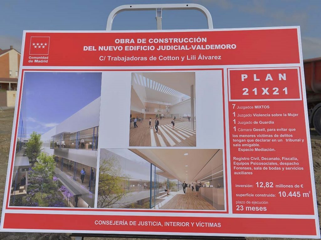 Las obras del ‘Palacio de Justicia’ de Valdemoro , adjudicadas en noviembre de 2020, dieron comienzo en febrero del año siguiente con el objetivo de crear un complejo en el que unificar las tres sedes en las que se reparten actualmente los seis juzgados del municipio, que dan servicio a 140.000 personas. Las obras culminaron el pasado mes de octubre.