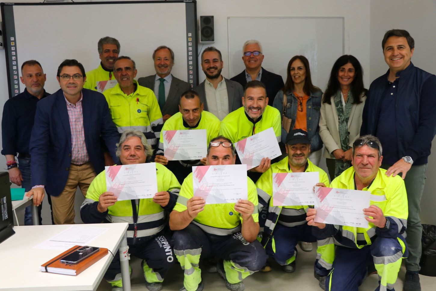 Ocho trabajadores de la empresa municipal Aserpinto han recogido sus diplomas de formación en trabajos de albañilería y acabado para operarios, tras completar el curso de una duración de 50 horas, en el centro de formación de la Fundación Laboral de la Construcción, ubicado en Vicálvaro.