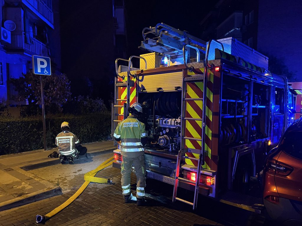 Los Bomberos del Ayuntamiento de Alcorcón han logrado controlar y extinguir el incendio que se ha producido en un cuarto piso mientras las Policía Nacional se encarga de las investigaciones en torno a este suceso.