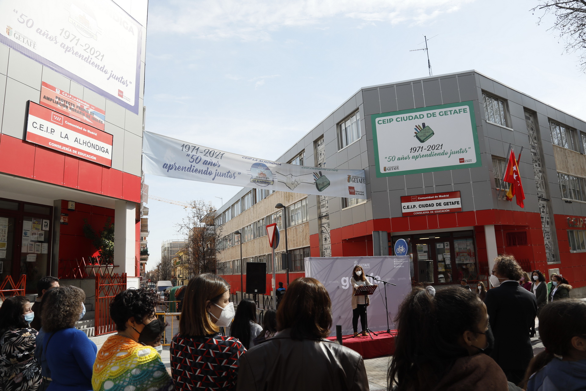 Tres de los colegios más emblemáticos de Getafe alcanzan durante este 2022 sus 50 primeros años de existencia. Se trata de los CEIP Alhóndiga y Ciudad de Getafe, situados ambos en el barrio de la Alhóndiga a escasos metros de distancia uno del otro, y el CEIP Ortiz Echagüe, en el barrio de Juan de la Cierva.