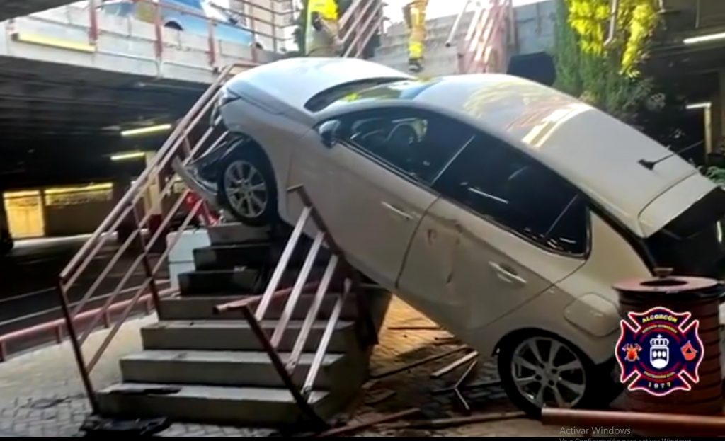 Un coche cayó este domingo por el hueco de unas escaleras en un centro comercial de Alcorcón sin dejar heridos, según informaron los Bomberos de la ciudad en su cuenta de la red social X.