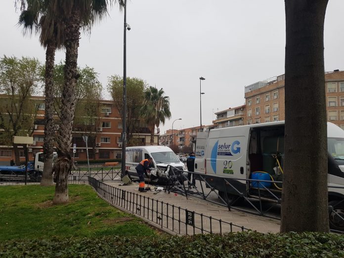Un conductor que cuadriplicaba la tasa de alcohol y dio positivo en el control de drogas se llevó por delante el vallado de la glorieta Isidro Parejo en Getafe, entre la calle Ferrocarril y el Paseo de la Estación, en Getafe