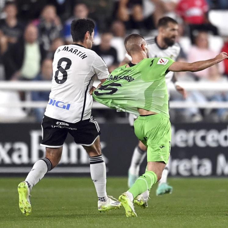 A partir de ahí, y con el conjunto burgalés bien resguardado a la espera de alguna buena contra, los de Borja Jiménez llevaron la iniciativa, pero sin crear más peligro que un disparo de Undabarrena a las manos de Caro y otro de Neyou ligeramente desviado. Ya en el tramo final del primer acto, Caro se llevaba por delante en una salida con todo a Miguel de Fuente, Tocó balón primero, pero luego volteó al delantero en una acción que se le reclamó como penalti.