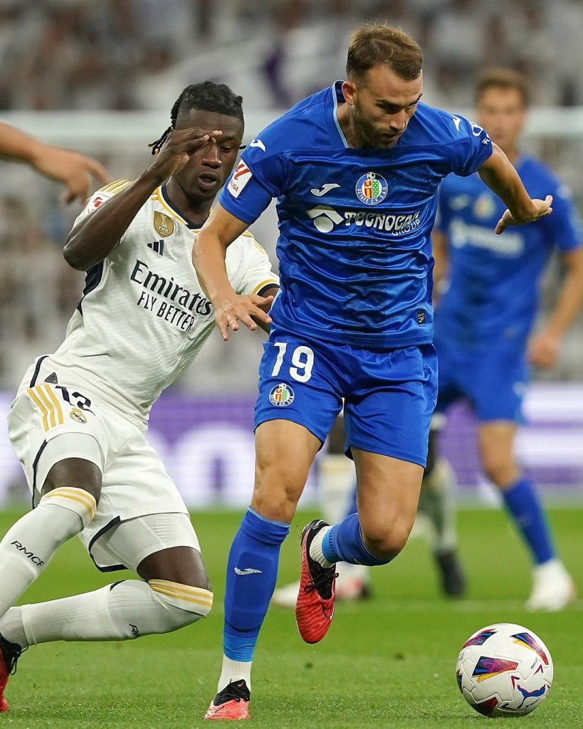Y es que Bordalás planteó un once de mucho físico con dos centrales como Djené, ya habituado a jugar de mediocentro y encargado de ahogar a Bellingham, y Omar Alderete, en el medio. Todo eso neutralizó a un Real Madrid lento, con pocas ideas y sin espacios para hacer daño, y además castigado por un error en una entrega de Fran García que no perdonó un ex para regatear a Kepa Arrizabalaga y poner el 0-1.