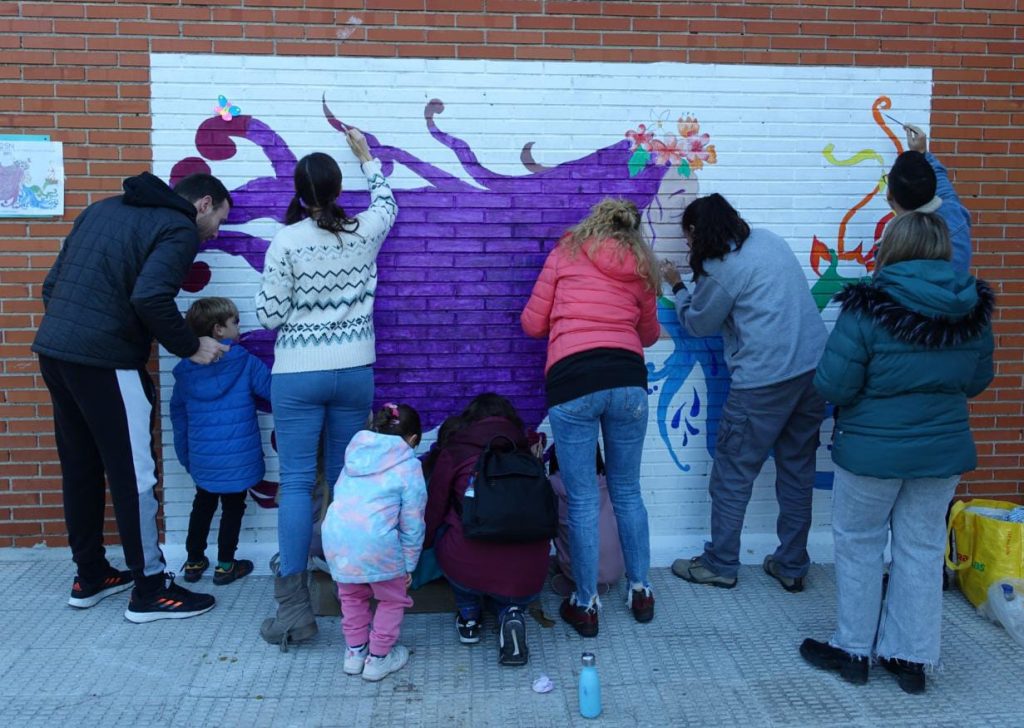 La idea partió de la Comisión de Igualdad que forman cuatro madres de alumnos de este colegio de Getafe. «La intención del mural es relacionar a la madre naturaleza con nosotras mismas puesto que las mujeres también creamos vida como la naturaleza y que también hay que cuidarnos como hacemos con ella», narran a Al Cabo de la Calle las precursoras de este mural, pintado en tres días «entre familias que, a pesar del frío que hemos pasado, han venido a colaborar y hacer historia en el centro, puesto que es el primer mural que está pintado por familias».