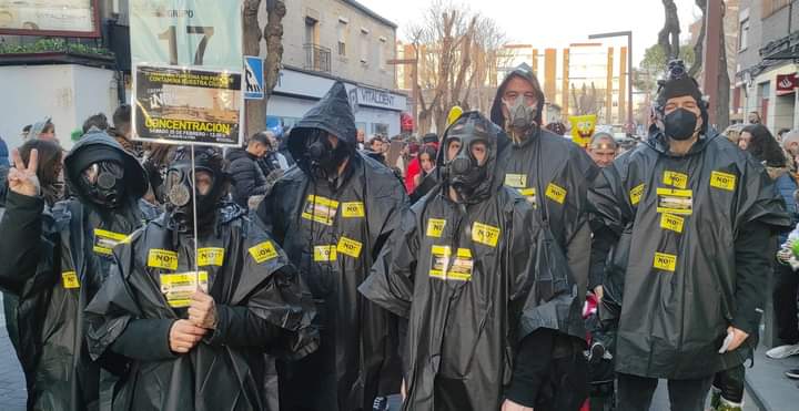 El Carnaval de Valdemoro, celebrado ayer en todo su esplendor por primera vez en tres años, contó con una chirigota muy especial, «Los intoxicados», una agrupación que expresó el rechazo vecinal al crematorio municipal en medio del jolgorio reinante.