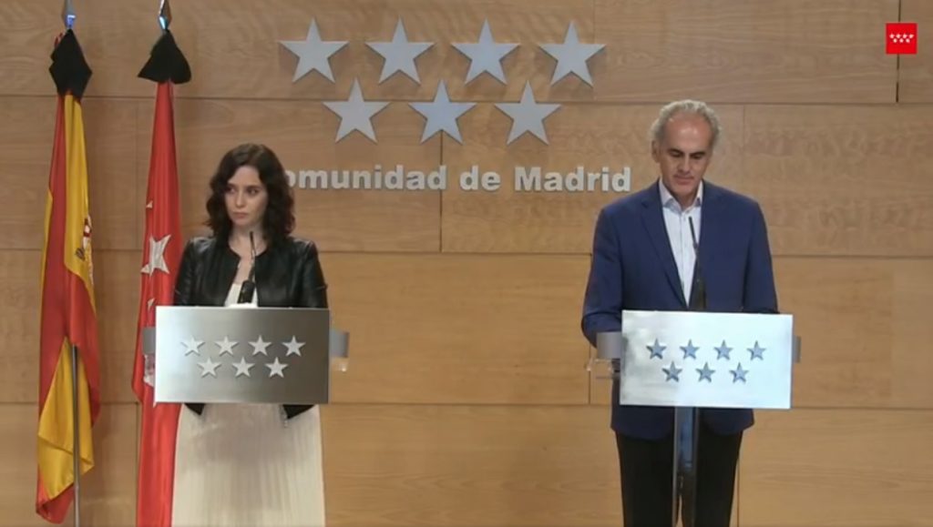 El Juzgado de Instrucción número 5 de Leganés ha desestimado una querella, presentada por once familias de cuatro residencias de la ciudad, contra la presidenta regional, Isabel Díaz Ayuso, y el consejero de Sanidad, Enrique Escudero. La querella trataba de inculparles por la gestión de estos centros durante los peores meses de la pandemia de coronavirus, donde se produjeron miles de muertes.