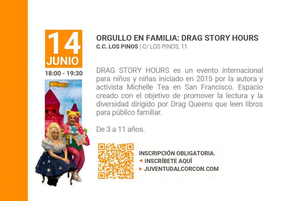 En el programa de los actos con motivo del Orgullo 2024 publicado por el Ayuntamiento de Alcorcón, gobernado por PSOE, Ganar Alcorcón y Más Madrid; se anuncia para el viernes 14 de junio una lectura en el Centro Cultural Los Pinos titulada ‘Orgullo en familia: Drag Story Hours’.
