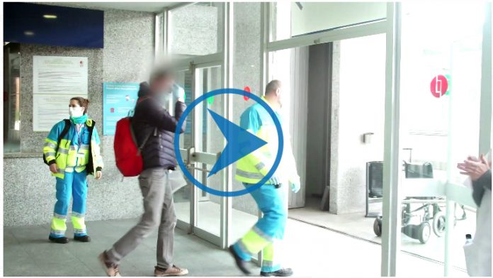 Este es el momento en el que el primer paciente de Ifema recibe el alta (Foto: Comunidad de Madrid)