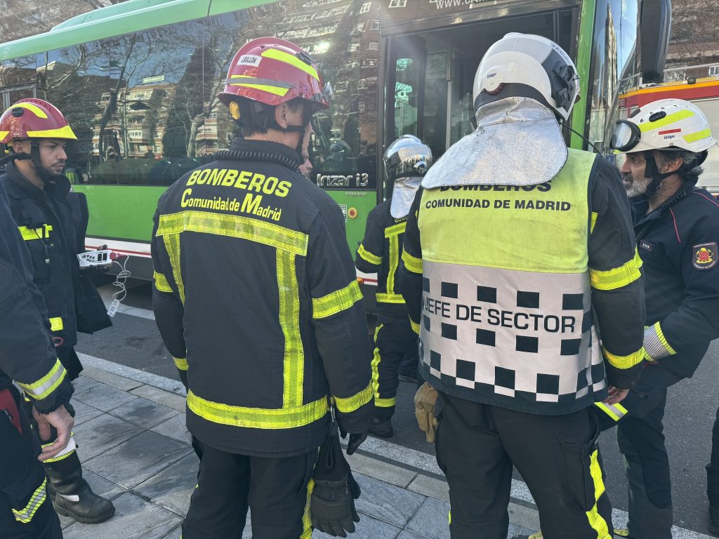 Efectivos de bomberos junto al autobús (foto: 112 Comunidad de Madrid)