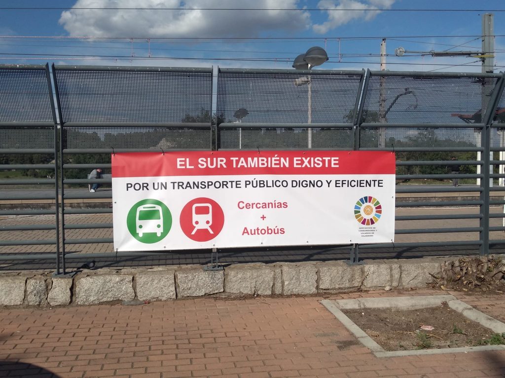 Varias pancartas han sido instaladas en distintos puntos del municipio exigiendo mejor servicio de Cercanías y autobuses.