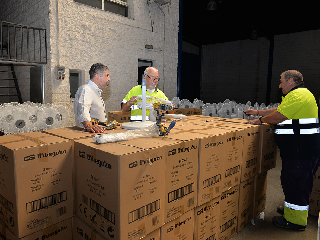 El alcalde, David Conde, ha supervisado hoy el montaje de los ventiladores que lleva a cabo personal de la empresa pública Gesvival y que, una vez concluya la jornada electoral, se distribuirán en aquellos centros municipales y colegios públicos que los necesiten.