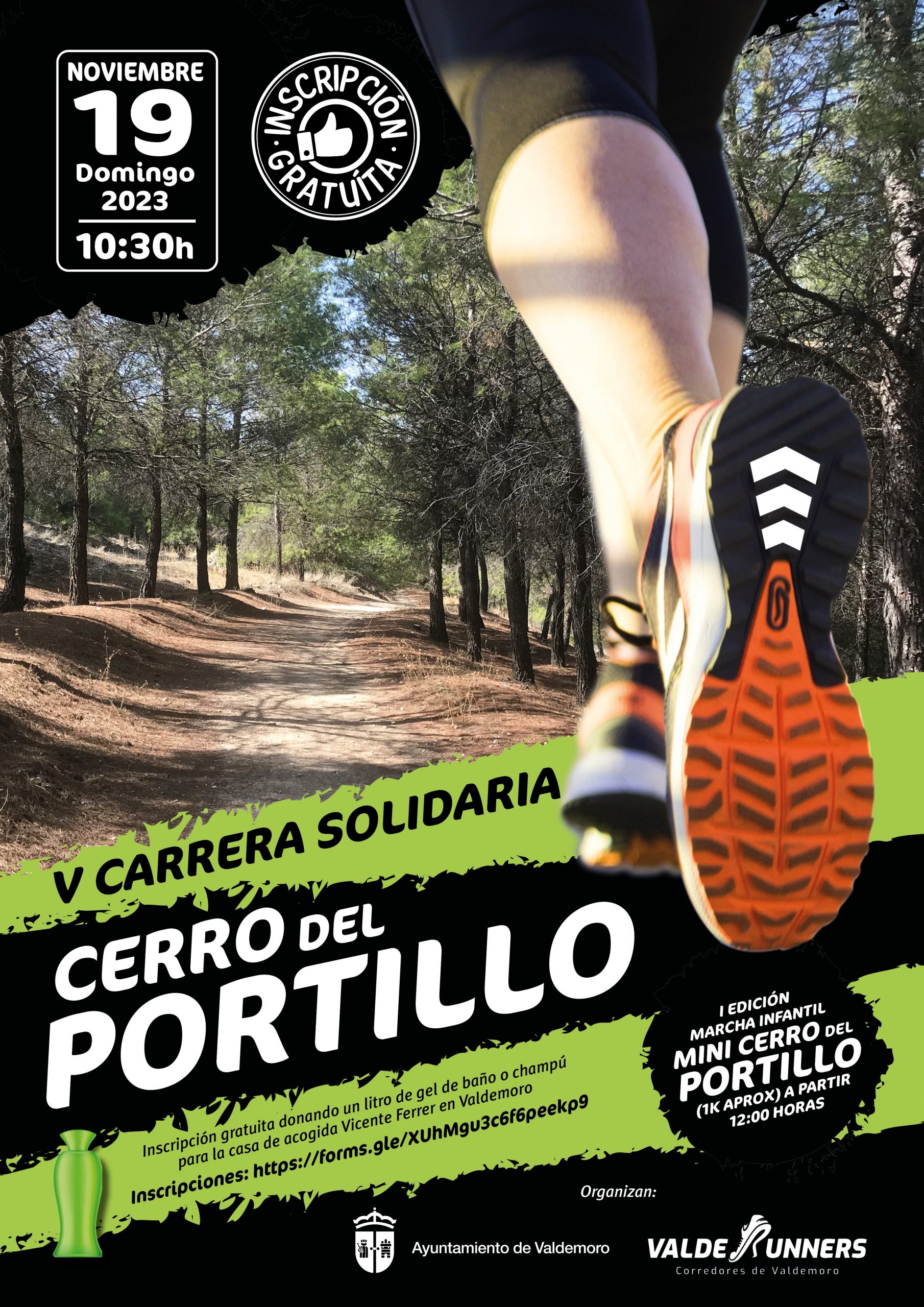 El próximo domingo 19 de noviembre, a las 10.30 horas, se celebrará el V Cross Solidario Pinar Cerro del Portillo, organizado por el Ayuntamiento de Valdemoro y el colectivo Valderunners, que en esta edición 2023 se abre a la participación infantil.
