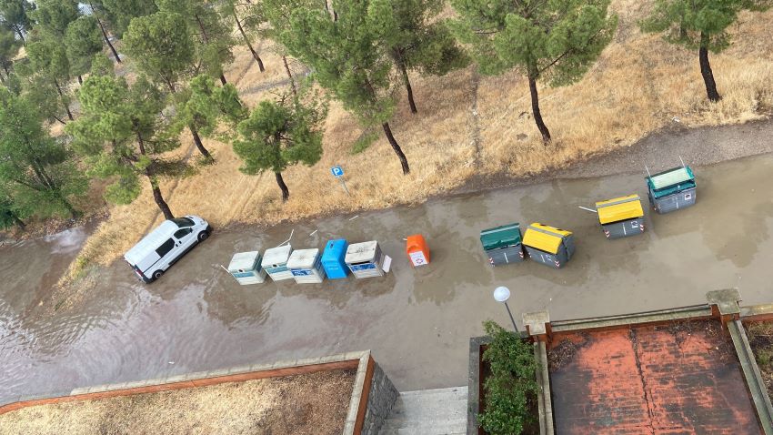Según se ve en los vídeos que acompañan esta noticia, la pequeña tormenta ha generado balsas insalvables para los vecinos en la misma puerta de sus casas. Y han provocado que los contenedores de basura acaben flotando en medio de la vía, impidiendo el tránsito de vehículos y personas.