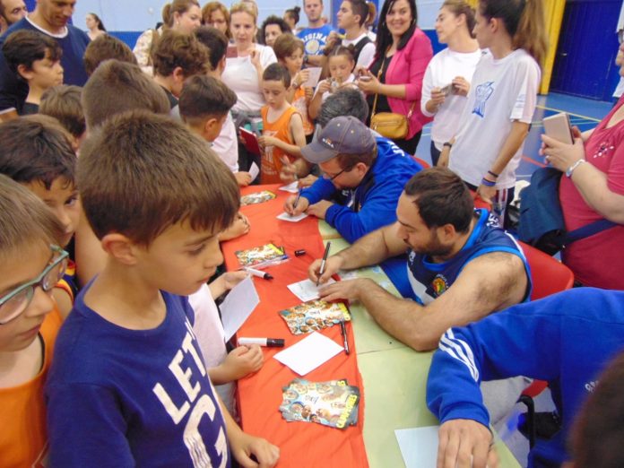 Los niños y niñas que forman parte del Pintobasket ECB disfrutaron recientemente de la visita de cuatro de los protagonistas de la película ‘Campeones’, una de las que más taquilleras de los últimos tiempos en el cine español. Jesús Lago, Julio Fernández, Roberto Chinchilla y Sergio Olmos no solo conversaron con los pequeños jugadores presentes en el pabellón Sandra Aguilar, sino que también firmaron multitud de autógrafos y posaron con ellos para cuantas fotos se les solicitaron.