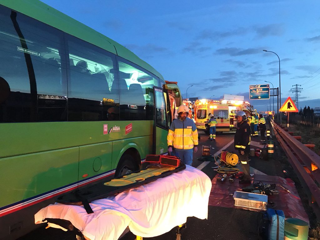 Un autobús de pasajeros de la línea 422 que une Valdemoro y Madrid capital ha impactado este martes a las 06.27 horas contra la parte trasera de un camión en el kilómetro 18 de la A4, a su paso por Pinto. También se ha visto implicado otro camión resultando heridas 16 personas. El conductor del autobús ha tenido que ser excarcelado por los bomberos y 5 pasajeros, todos ellos con lesiones leves, han sido trasladados a los Hospitales de Getafe y Valdemoro, según han informado desde Emergencias de la Comunidad de Madrid.