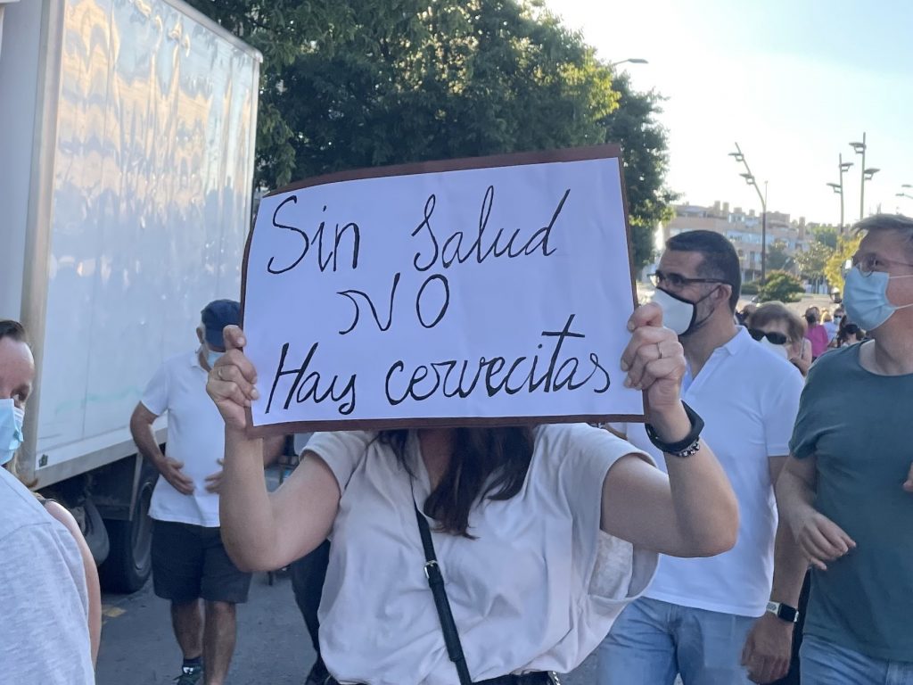 Así ayer se podían leer pancartas como «Sin salud no hay cervecitas» o «No a la falta de atención presencial en los centros de salud».