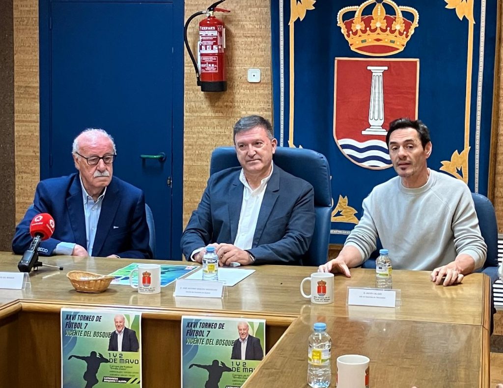 El salón de Plenos del Ayuntamiento de Humanes de Madrid ha albergado este jueves la presentación del XXVI Torneo de Fútbol Vicente del Bosque, que tendrá lugar durante los próximos días 1 y 2 de mayo en el campo de fútbol municipal Emilio Zazo.