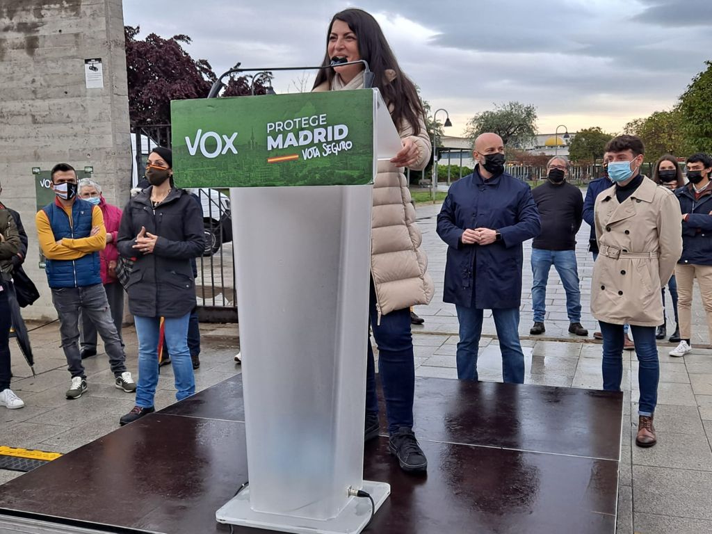 La diputada y portavoz adjunta de VOX en el Congreso de los Diputados, Macarena Olona, estuvo este domingo en Pinto, en un acto de campaña del partido, junto al portavoz local, Miguel Maldonado Caballero.