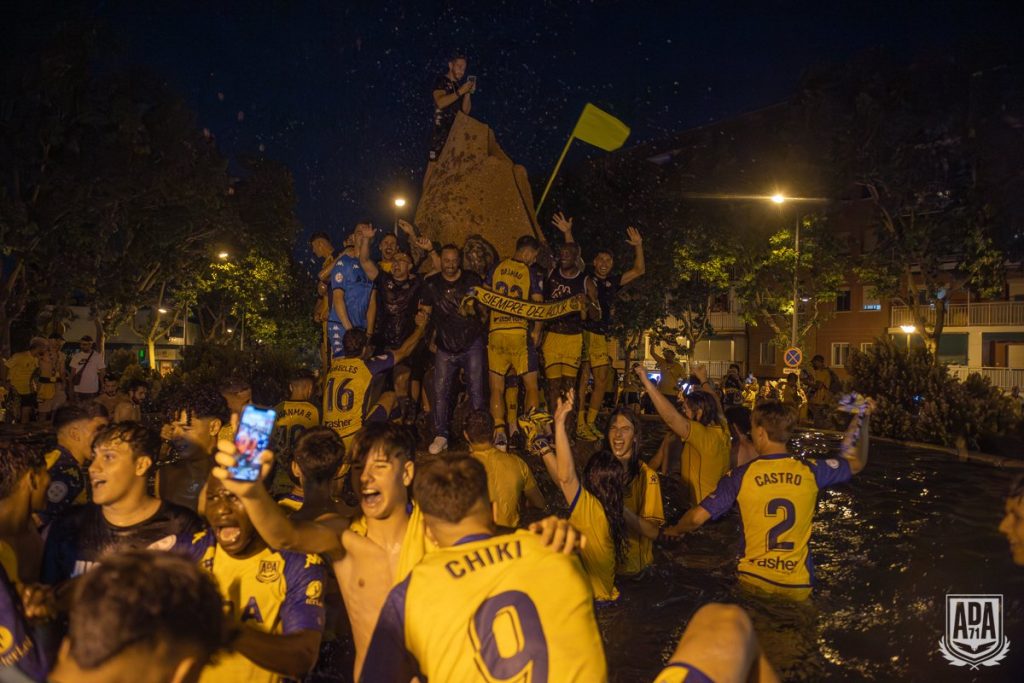 Y desde Santo Domingo, ya bien entrada la noche, los festejos se trasladaron hasta la fuente de Los Cantos, sede habitual de las celebraciones del equipo alfarero. Con la zona ya completamente abarrotada de seguidores, el autobús consiguió llegar a duras penas hasta las inmediaciones de la fuente y jugadores y técnicos no solo se bajaron para saludar al gentío presente sino que tuvieron incluso ocasión de darse un baño que seguramente tuvo sabor a gloria.